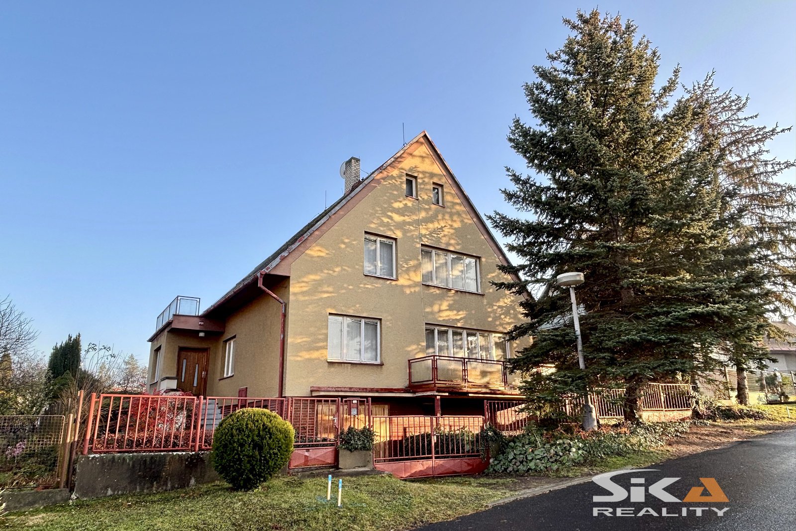 Nabízíme exkluzivně k prodeji samostatně stojící rodinný dům umístěný na pozemku obdélníkového půdorysu o celkové výměře 827 m2, nacházející se v klidné rezidenční čtvrti s výbornou dostupností, v ulici Sokolovská v Lounech. Pozemek, na kterém se stavba domu nachází, je celkově oplocen a má převažující západo - východní orientaci vůči světovým stranám. Vlastní stavba domu je umístěna u západní hranice pozemku s odstupem od uliční čáry, s přístupem a možností vjezdu na pozemek z obecní komunikace. Objekt je napojen na všechny IS: voda a kanalizace z obecního řádu, plynová přípojka, elektrická přípojka. Stavba domu má jedno nadzemní podlaží, využité podkroví a je v celém půdorysu podsklepená. K hlavní hmotě domu přiléhá, u severní a východní obvodové stěny v úrovni 1.NP, veranda zajišťující vstup do domu, v úrovni podkroví je nad verandou realizována venkovní terasa bez zastřešení. Dispoziční řešení: Suterén - garáž pro stání jednoho OA, malá dílna, kotelna (zde umístěn centrální plynový kotel pro vytápění celého objektu), chodba, spíž, betonové schodiště do 1. NP, v části pod verandou prostor pro uskladnění přístupný z venku. 1.NP - bytová jednotka o dispozici 3+1 s příslušenstvím, veranda, centrální chodba, ze které je umožněn vstup do všech místností v 1.NP - samostatné WC, koupelna s vanou, kuchyně s navazující spíží, obývací pokoj s přístupem na balkon, pracovna s krbem, ložnice. Podkroví - bytová jednotka o dispozici 3+1 s příslušenstvím, centrální chodba, ze které jsou přístupné všechny místnosti v podkroví - koupelna s vanou společná s toaletou, kuchyně, obývací pokoj, ložnice, pracovna, z pracovny po dřevěných mlynářských schodech přístupný půdní prostor ve vrcholu střešní konstrukce. Vytápění ústřední plynové, ohřev vody průtokovými plynovými ohřívači. Objekt je v původním udržovaném stavu odpovídajícím době výstavby, předpokládá se rekonstrukce/modernizace objektu. Pozemek okolo domu zatravněn, osázen vzrostlými keři a stromy, na pozemku umístěn venkovní zděný krb a zimní sklípek s betonovými stěnami, uzavřen betonovou deskou s ocelovým víkem. Dům nabízí výbornou příležitost pro rodinné i vícegenerační bydlení s dostatečně velkým pozemkem, navíc je situován v prémiové lokalitě s minimem dopravní zátěže (zajíždí pouze rezidenti). Vzhledem ke skutečnosti, že PENB se zpracovává, uvádíme třidu energetické náročnosti. "G". Doporučujeme osobní prohlídku.