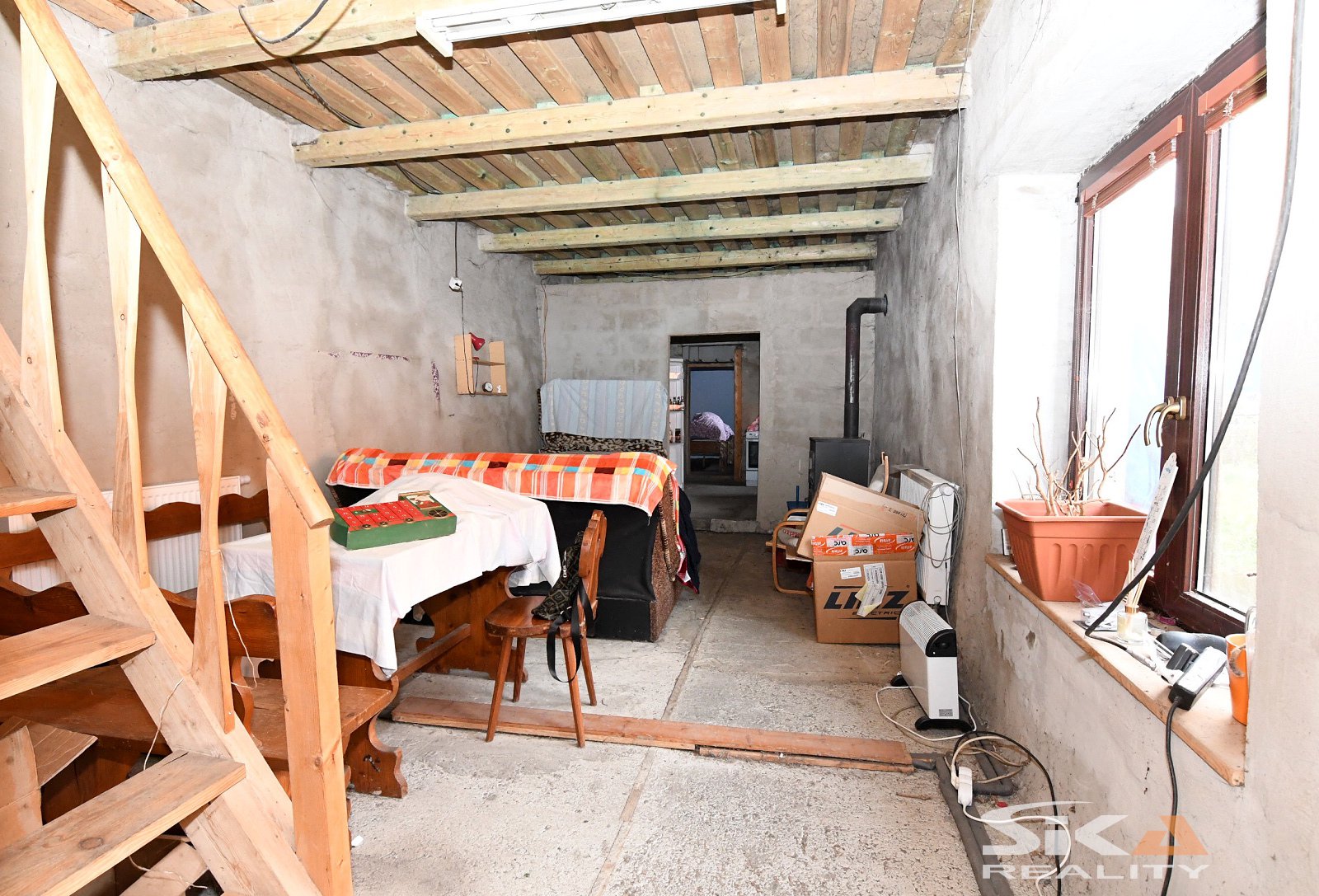Nabízíme Vám k prodeji rodinný dům s vedlejšími stavbami a zahradou v obci Volenice. Nemovitost se nachází na pozemku o celkové výměře 742 m² a je vhodná jak k trvalému bydlení, tak i k celoročnímu rekreačnímu využití. Přízemní rodinný dům je postaven ze smíšeného zdiva, má sedlovou střechu a dispozičně nabízí obytnou část 3+1 s příslušenstvím o výměře cca 85 m². Na objektu byla započata dílčí rekonstrukce, která však nebyla dokončena, což dává novému majiteli možnost dokončení dle vlastních představ. V současné době má dům do dvorní části nová plastová okna a střešní okna, jsou zde osazeny deskové radiátory s novými rozvody v mědi, dále částečně nové betonové podlahy, částečně nové rozvody elektroinstalace a rozvody vody a odpadů. Dům je napojen na veřejný vodovod a elektrickou energii, odpady jsou svedeny do jímky. Vytápění je zajištěno kotlem na tuhá paliva, umístěným v samostatné stavbě kotelny. Na pozemku se dále nachází stodola využívaná jako dílna, vedlejší stavba kotelny, dřevěná pergola pro letní posezení a samostatná stavba původní letní kuchyně, ve které je v současné době funkční koupelna. Zahrada s rovinatým terénem je přístupná pouze z horní části stodoly a je aktuálně neudržovaná. Obec Volenice nabízí autobusové spojení a klidné venkovské prostředí. Základní občanská vybavenost se nachází v sousedních obcích Koštice a Počedělice. V případě zájmu o více informací či sjednání prohlídky nás neváhejte kontaktovat. Vzhledem ke skutečnosti, že nebyl předložen Průkaz energetické náročnosti budovy, je uváděna energetická třída G.